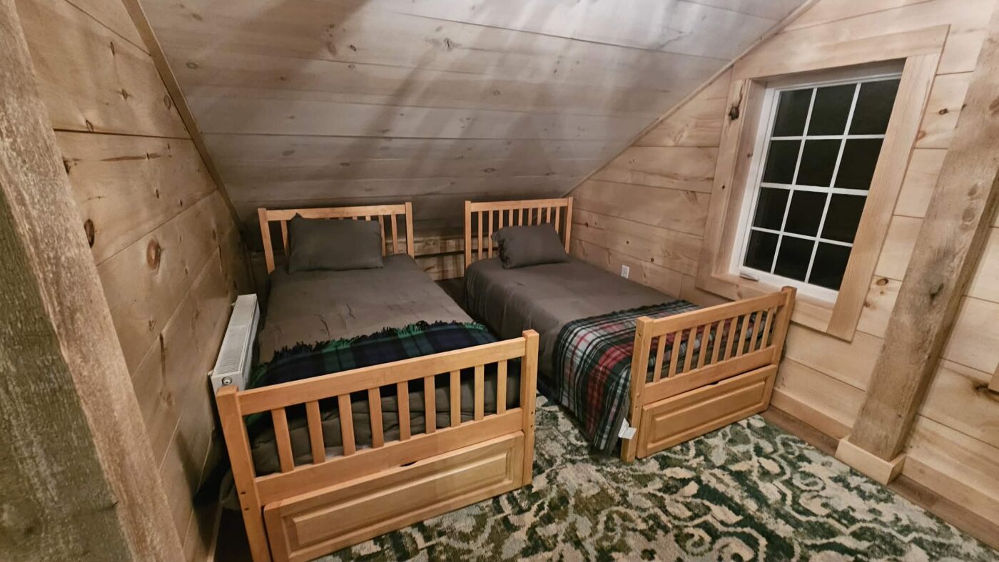 Larch shares Fen’s rustic-modern design but feels a bit more open and bright. It is ideal for families or groups who want comfort, style, and convenience during their northern Maine stay.